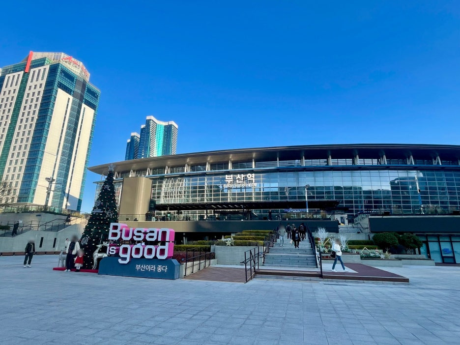 부산역 바로 왼쪽에 있는 고층 건물