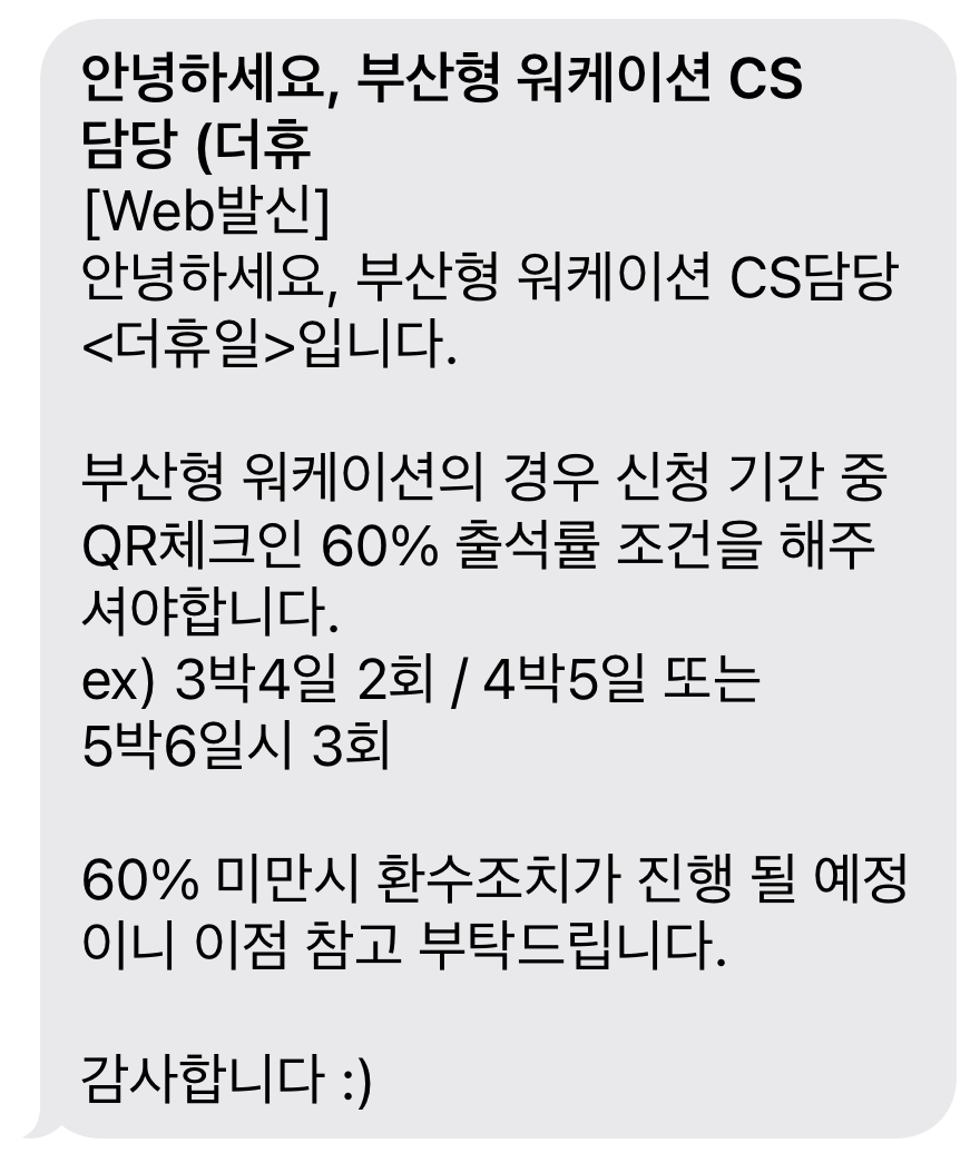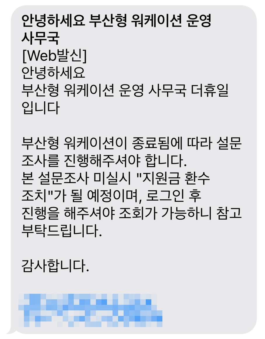 워케이션 마지막 날 문자 수신했고,