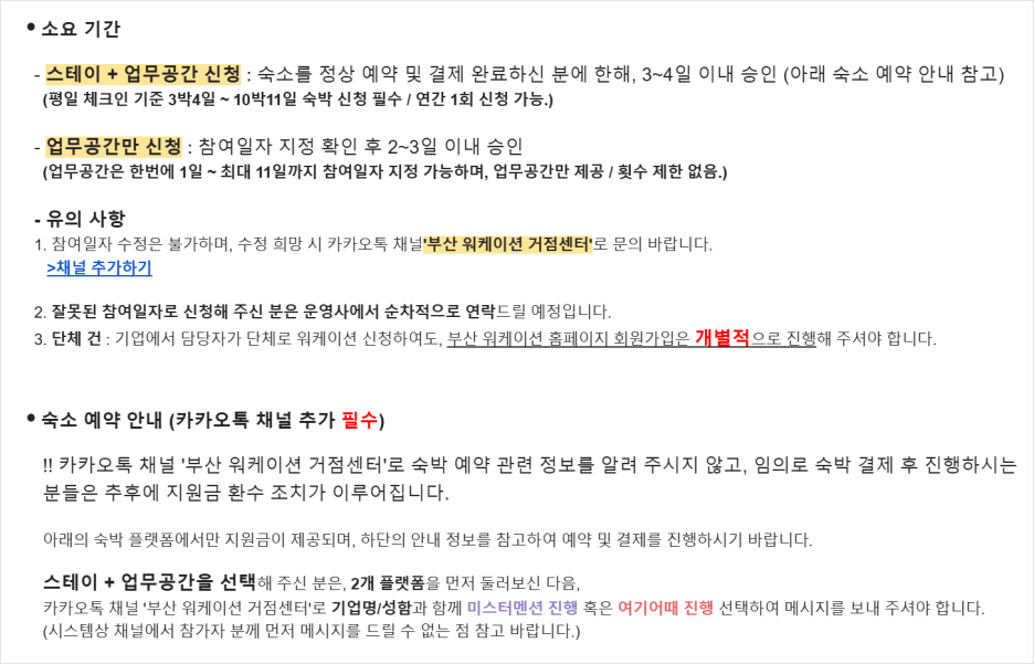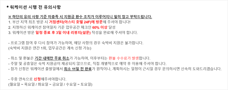 워케이션 유의사항과 같이