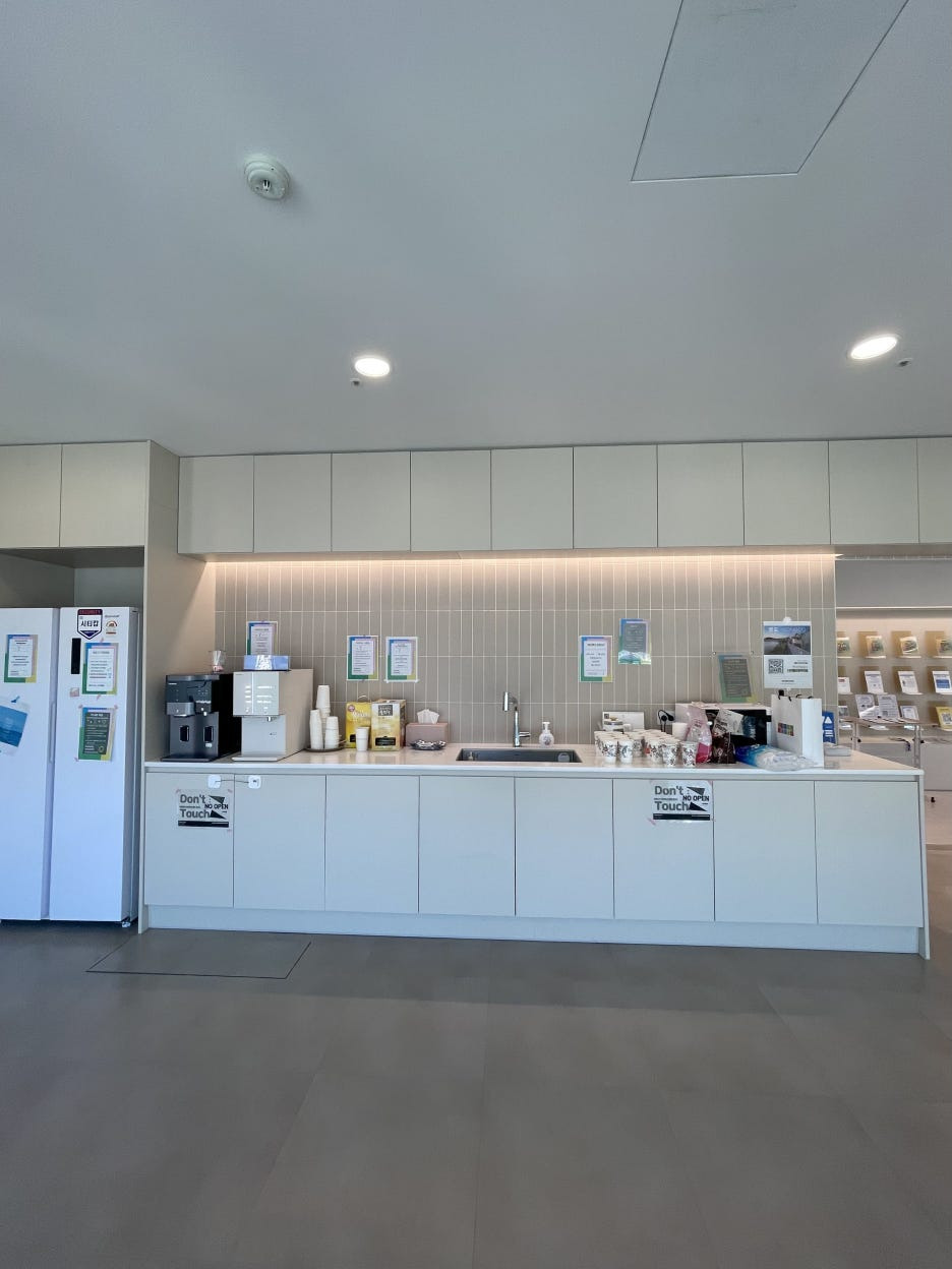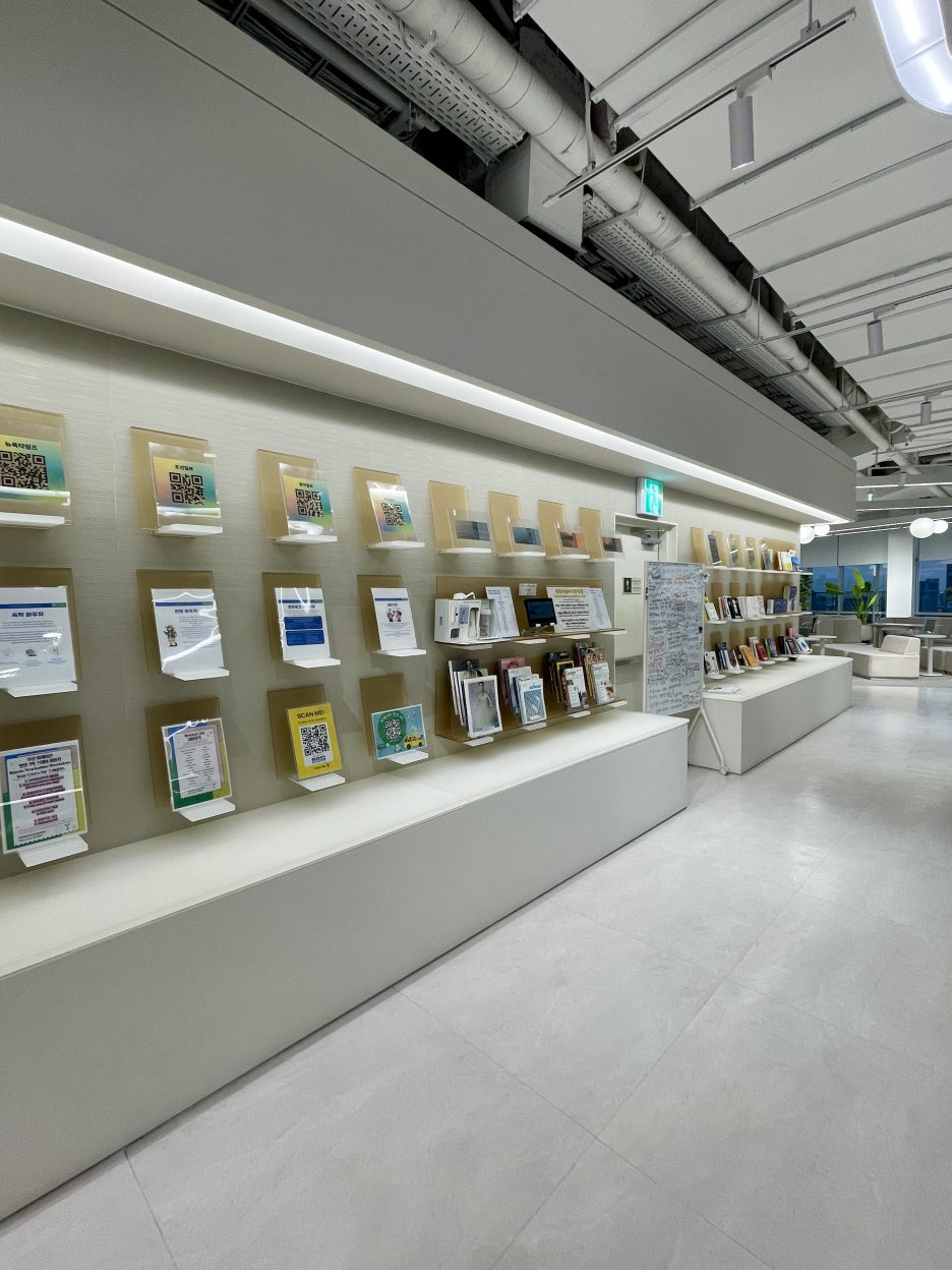 우선, 안내 데스크에서 QR 체크인, 업무공간 예약 및